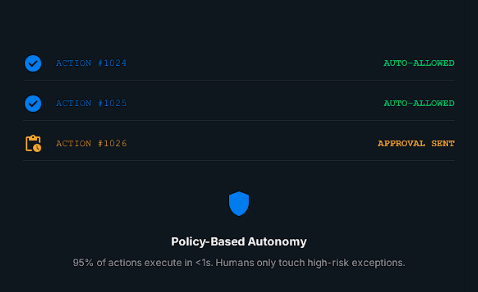 So teams are forced into a tradeoff: Slow everything down with manual approvals or Let actions execute without consistent control.