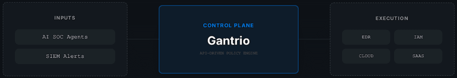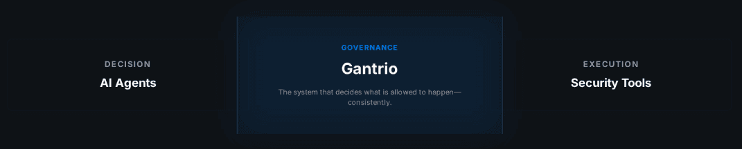 AI agents are already executing security actions, Gantrio governs them with policy, ensuring actions execute only when allowed, with provable control.
